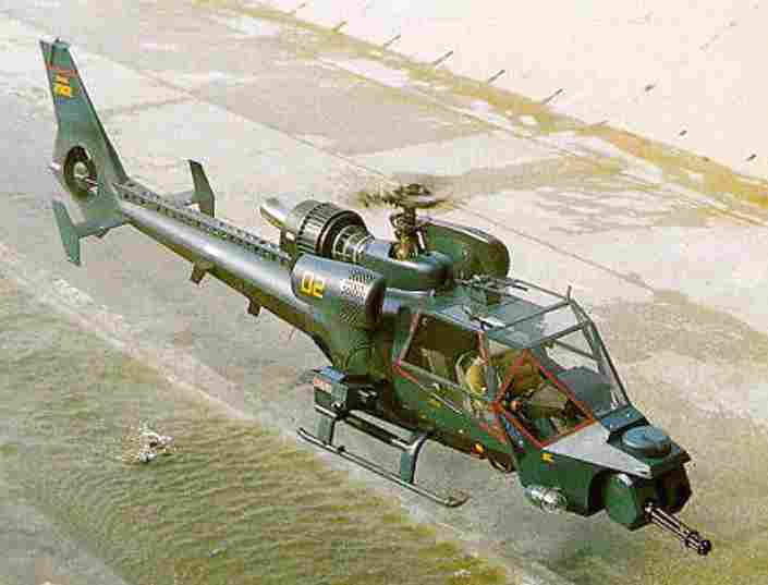 在电影《蓝霹雳》(Blue Thunder)里面,这架用“小羚羊”改装的警用武装直升机的武器是一门20mm加特林机炮,就是以M61为原型的