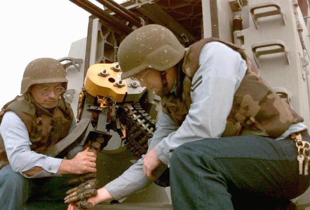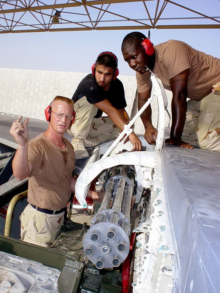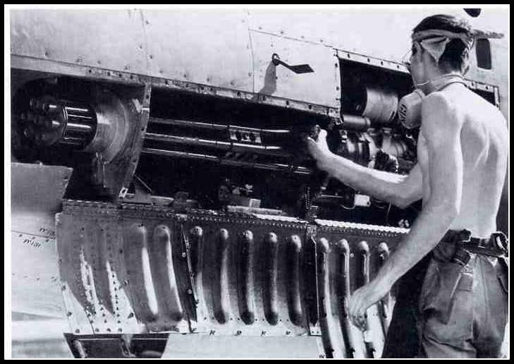 ![]() 在给AC-130A装填20mm炮弹 |
