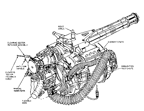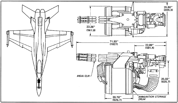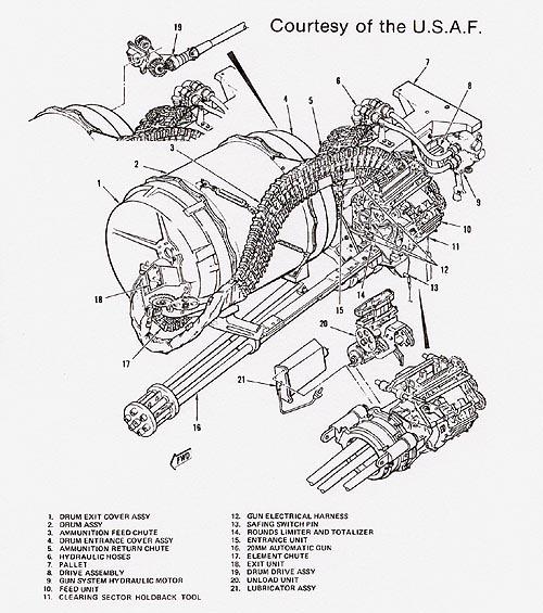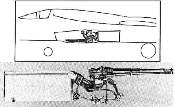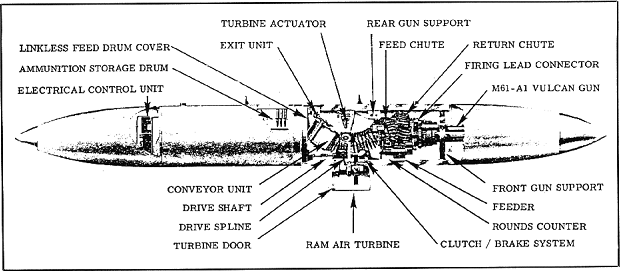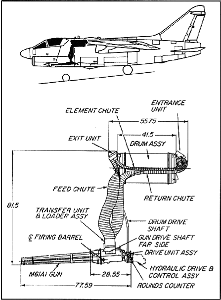 ![]() A-7攻击机上的“火神”武装系统,备弹1030发 |