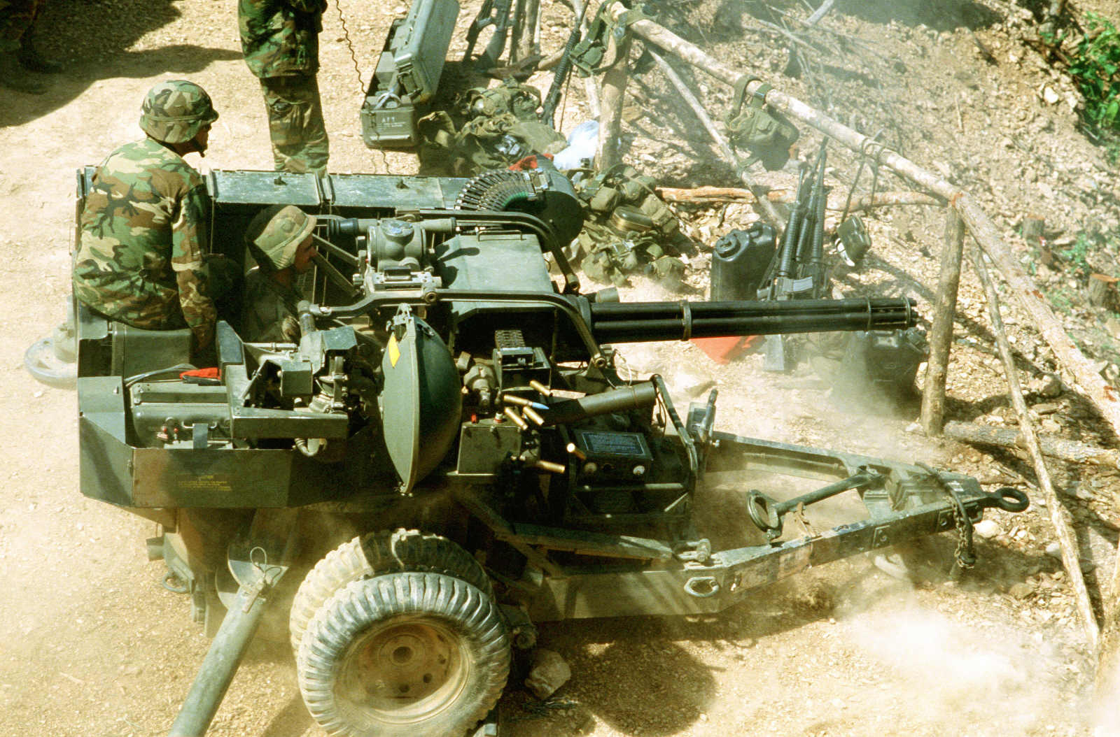 M163 VADS(Vulcan Air Defense System)防空系统是在M113A3为底盘以M61机炮为武器的自行防空炮,这种M61机炮为基础的武器系统名为M168,其射速在1,000~3,000RPM之间可调,射击方式为设定的10发、30发、60发或100发点射。