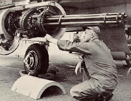 ![]() ![]() ![]() B-58轰炸机尾部的“火神”炮 |