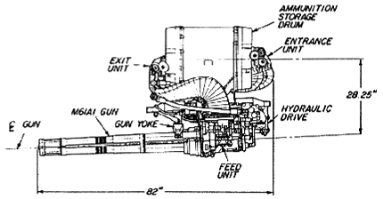 SUU-16/A的机炮和弹鼓布局