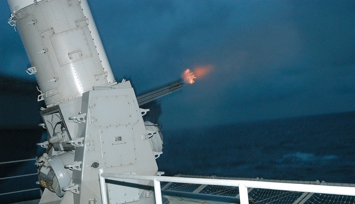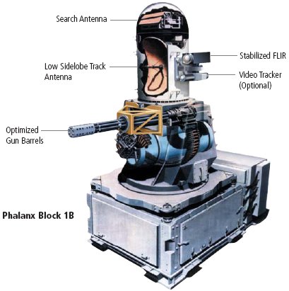 密集阵近程防御武器系统(Phalanx CIWS,台湾地区译为方阵近迫武器系统)是以M61机炮为基础的舰艇反导弹拦截系统,最初由通用动力生产,现在的承包商是雷神公司。早期Block 0的射速为3,000rpm,系统携弹989发;Block 1把携弹量增加至1,550发,而Block 1A又再把射速提高到4,500rpm