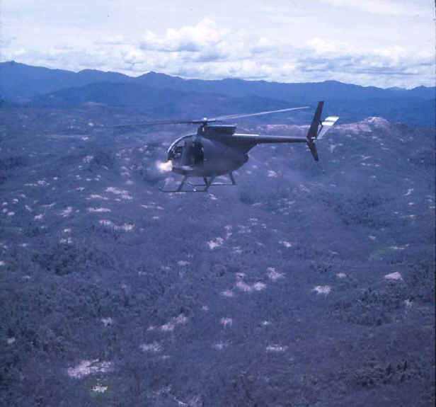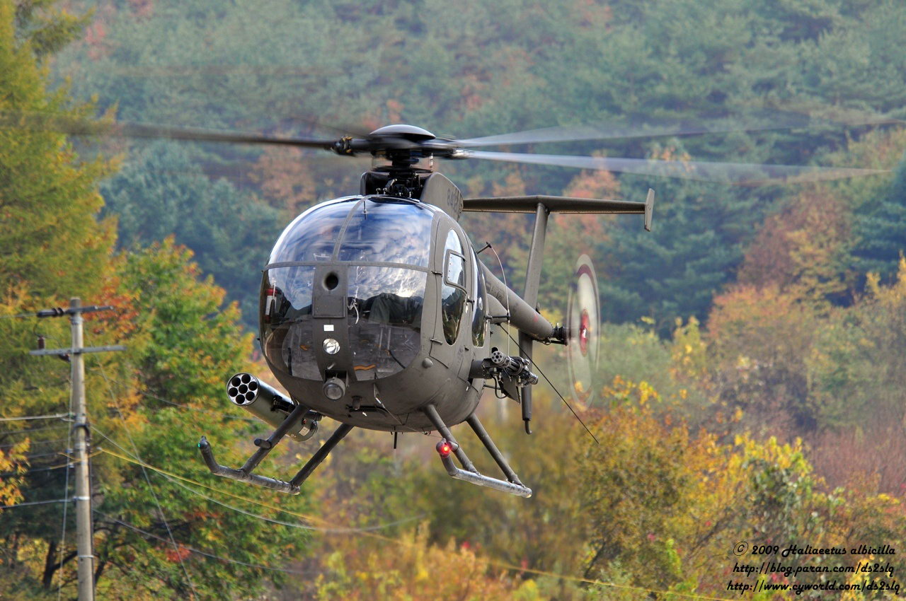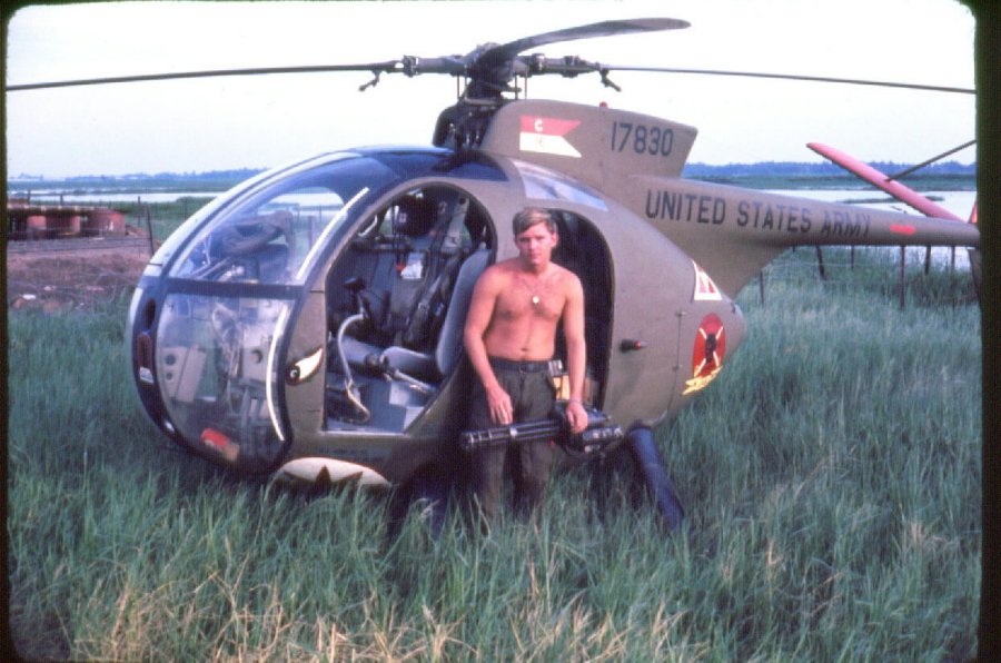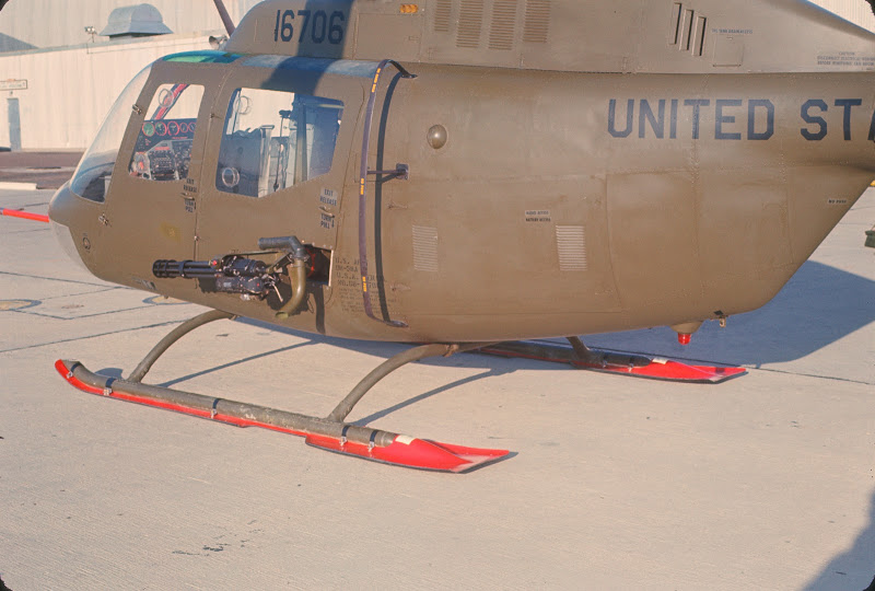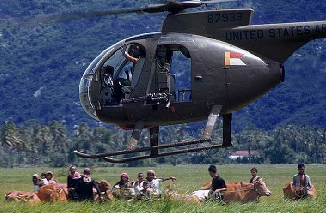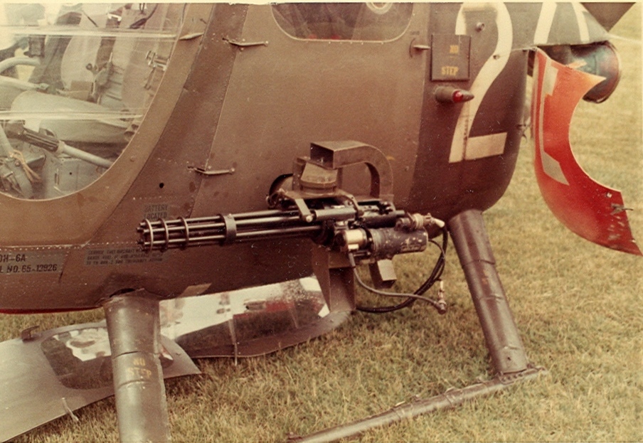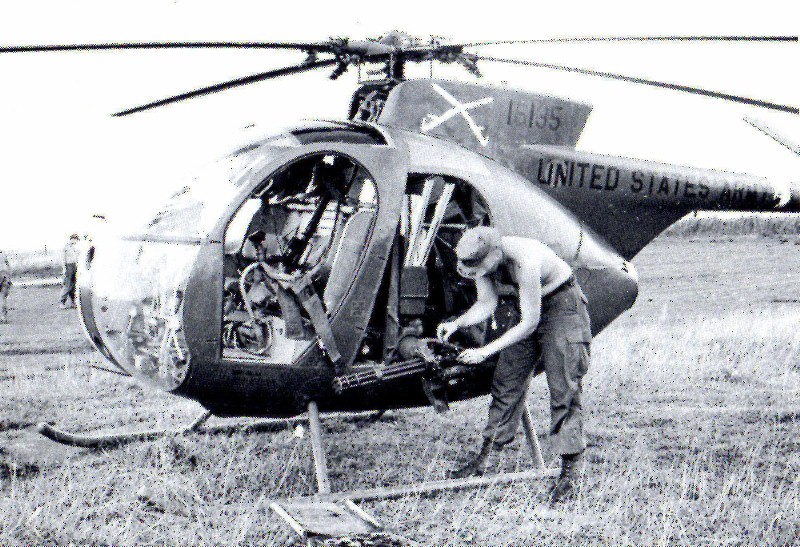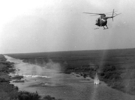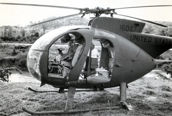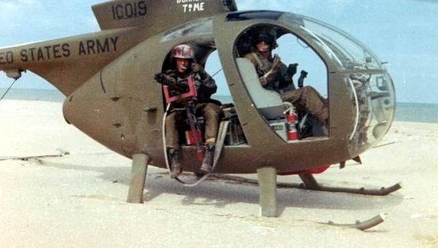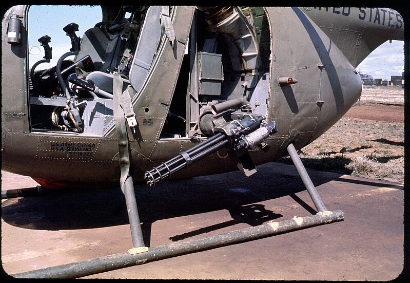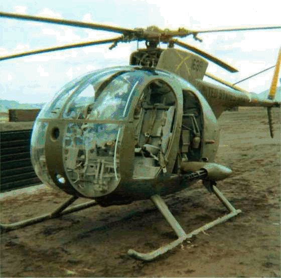 ![]() 越战中正在用M27武装系统扫射河面的OH-6 |