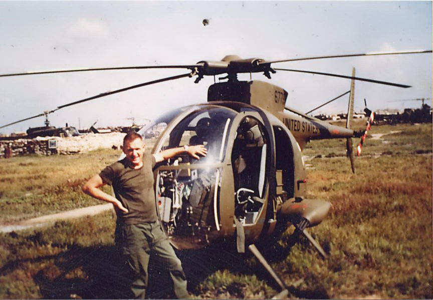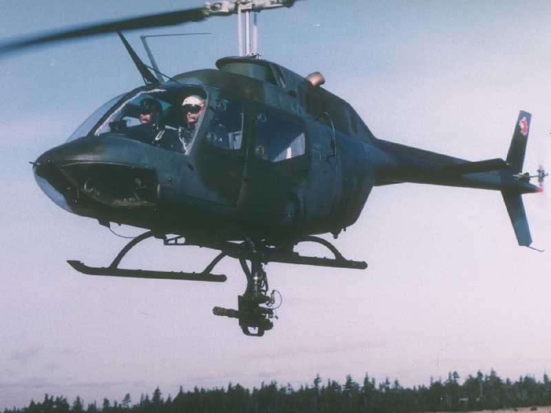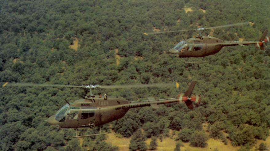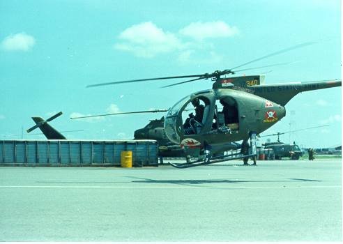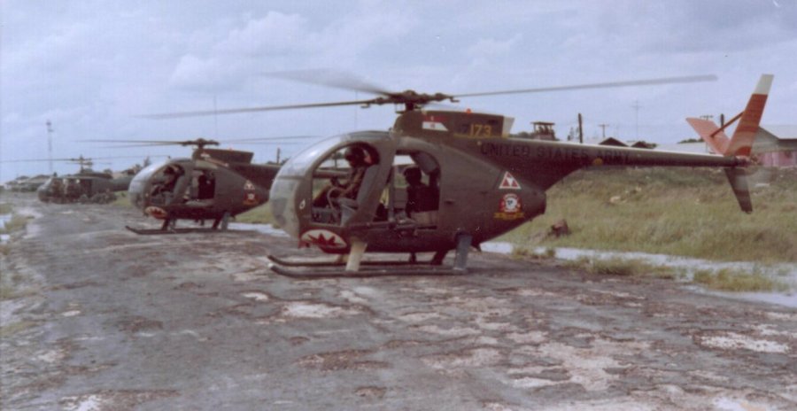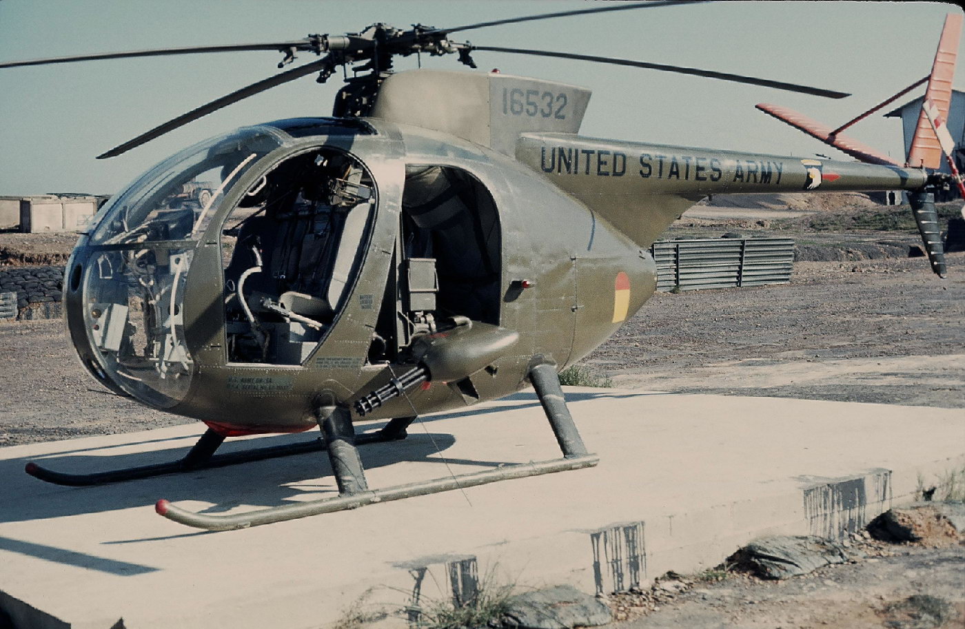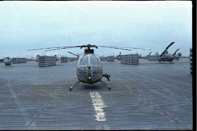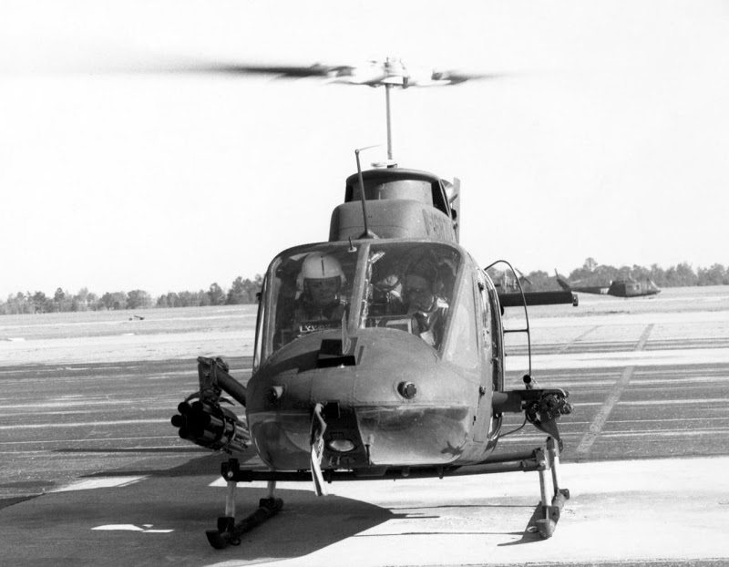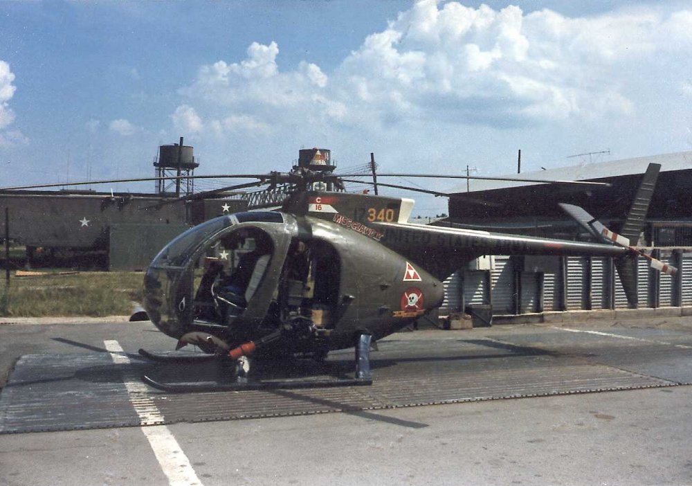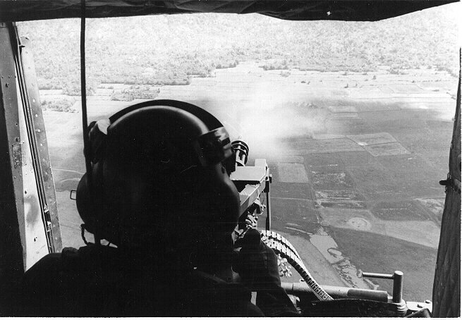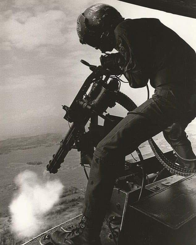 ![]() 越战中正在用M27武装系统扫射河面的OH-6 |