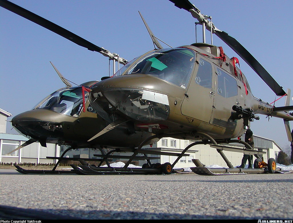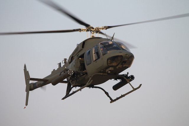 与AH-6相同但安装在贝尔406直升机上的M134及火箭巢武装系统