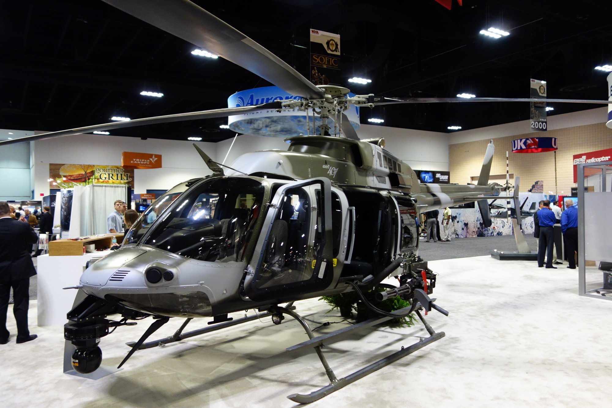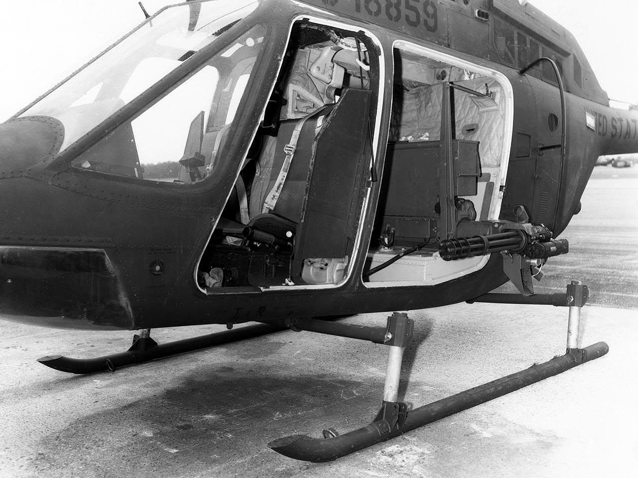 装在贝尔CH-136直升机上的MINI-TAT武器系统,挂载的是GAU-2B/A机枪