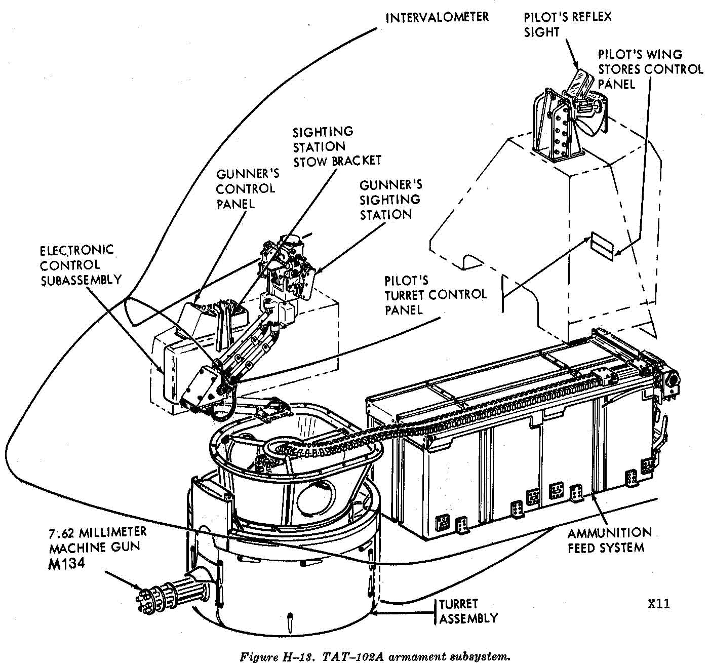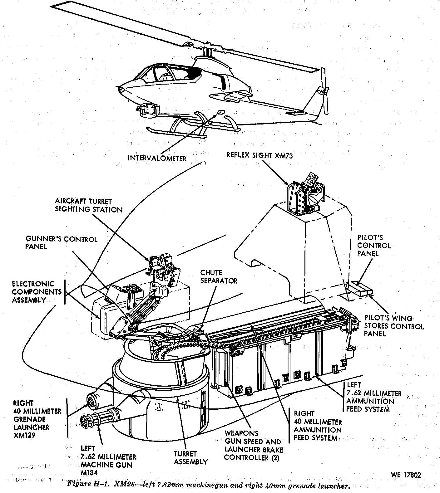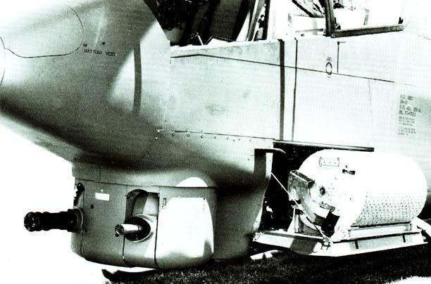 在AH-1的原型机上的武器系统是TAT-102,炮塔上只有一挺M134