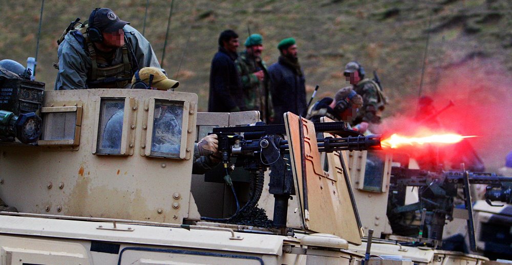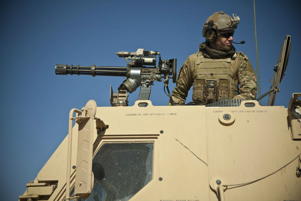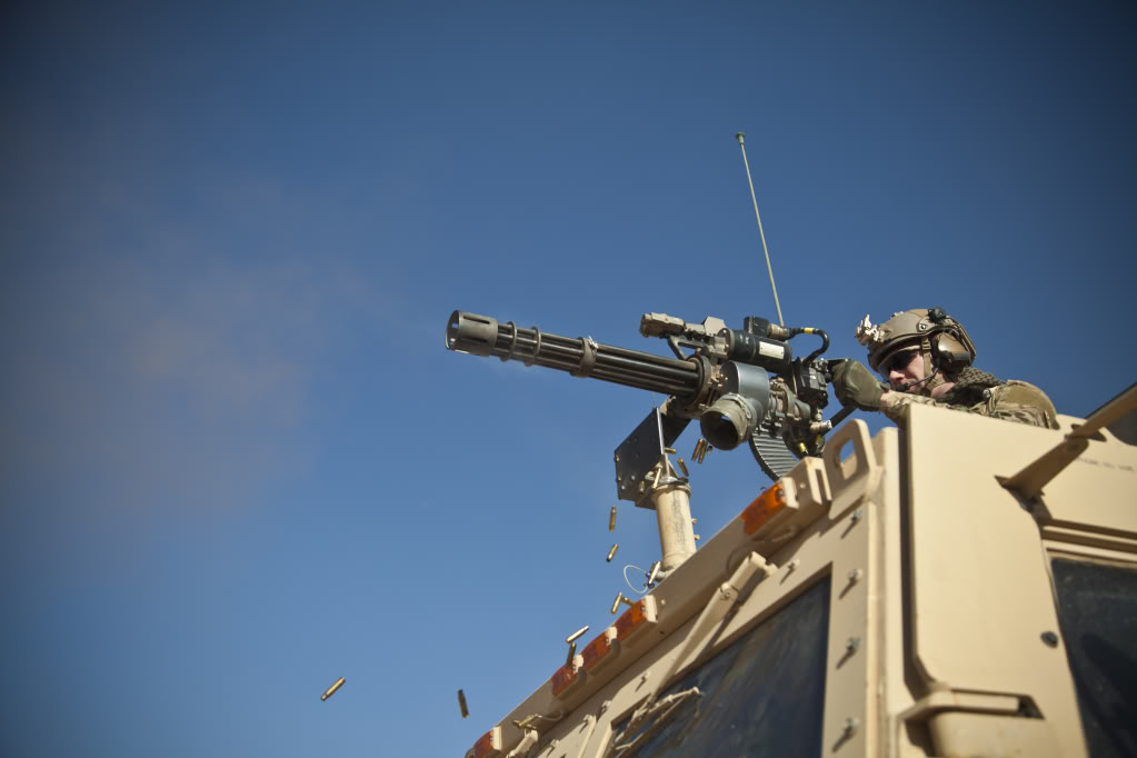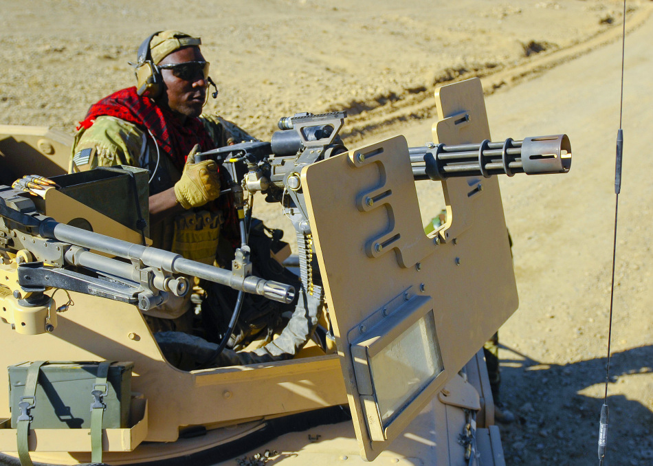 安装M-ATV防雷车上的CROWS遥控枪架上的MK44 Minigun