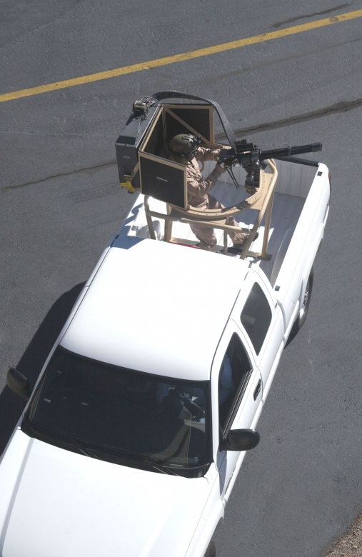 迪龙公司为M134D设计的通用车载环向射架,可安装在如悍马、皮卡或其他车辆上