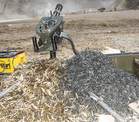 如果用5.56mm口径的XM214来改装的话,枪的重量大概可以控制到15公斤以内,再使用6-Pak系统配套的500发弹箱,那么总重量只要20多公斤。不过这样的高射速单兵武器仍然是没有实用意义,因为XM214在全速射击时的后坐力也超过了100公斤。