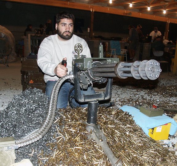 虽然美国一共有33个州允许平民合法持有全自动武器,但能够拥有和玩Minigun的人不多。因为在NRA登记的Minigun并不多,除了部分在私人手上,不多的另外几支则是在营业性靶场上。不光是因为枪贵,更是因为这枪打起来就是烧钱,子弹打少了不够爽,要爽了子弹却是一箱箱地烧。