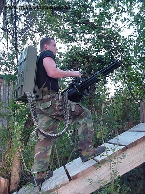 FPSRussian在他的视频里,在射击装在三脚架上的M134时是用实弹,而当射击手提M134时却是用空包弹