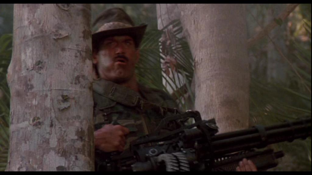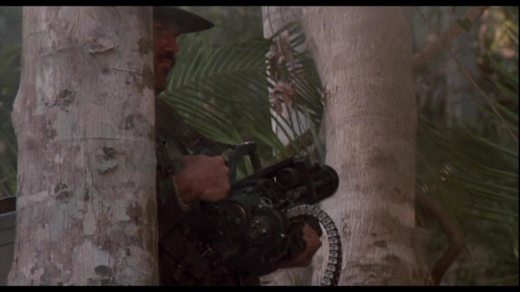 在1987年的电影《铁血战士》(Predator,或译为《掠食者》)中,最给人深刻印象的便是那挺手提的M134。但在现实中,是没有单人携带式的M134机枪,因为这样的武器有几个问题:一是重量太大,二是后坐力太大,三是根本就不好用。
