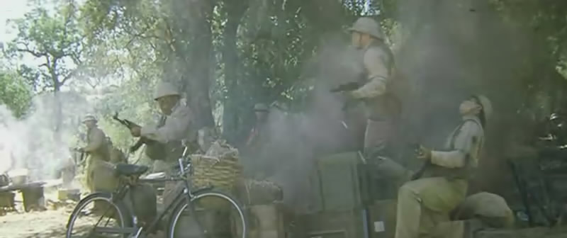就连国产的抗日穿越神剧也不能免俗,不过我觉得在摩托车头装挺小机枪,不如在车轮装挺机炮,这样可以利用车轮转动的同时旋转枪管![]()