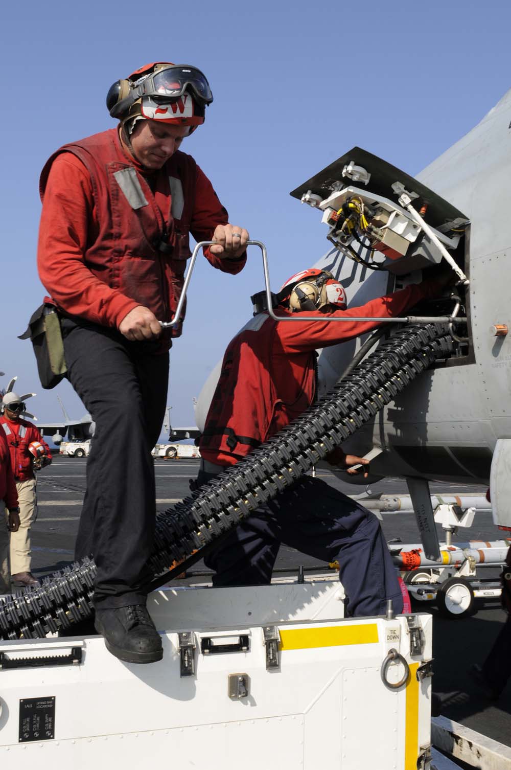假如没有电动的无链装填机,只需要在装弹口加上一个脱链装置,把串在普通弹链上的炮弹装弹弹箱,同时原本的弹链会脱下来