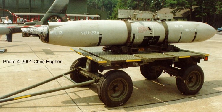 SUU-23/A机炮吊舱(陆军型号XM25),内装GAU-4/A内能源动力的加特林机炮