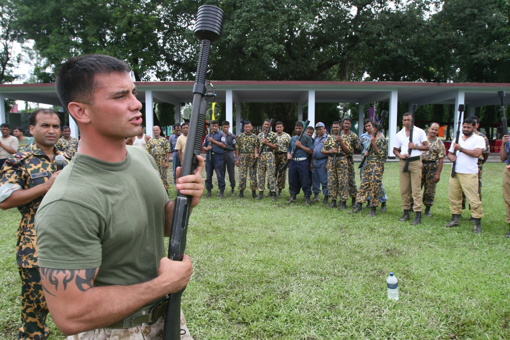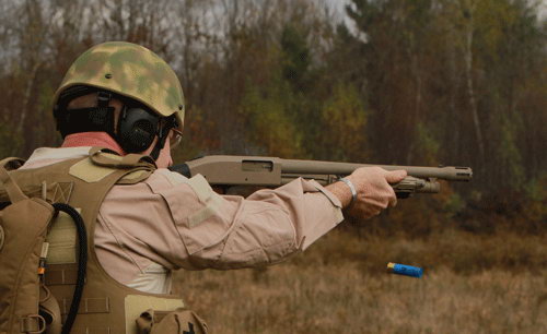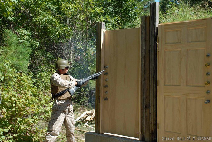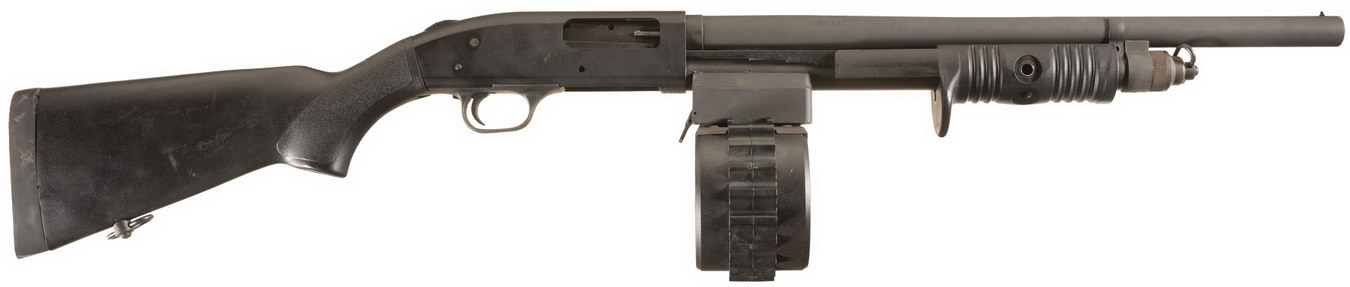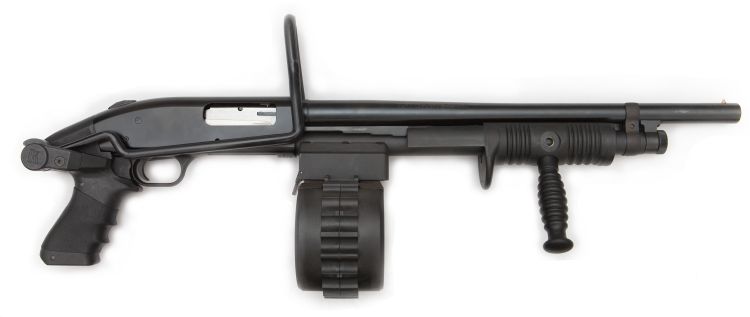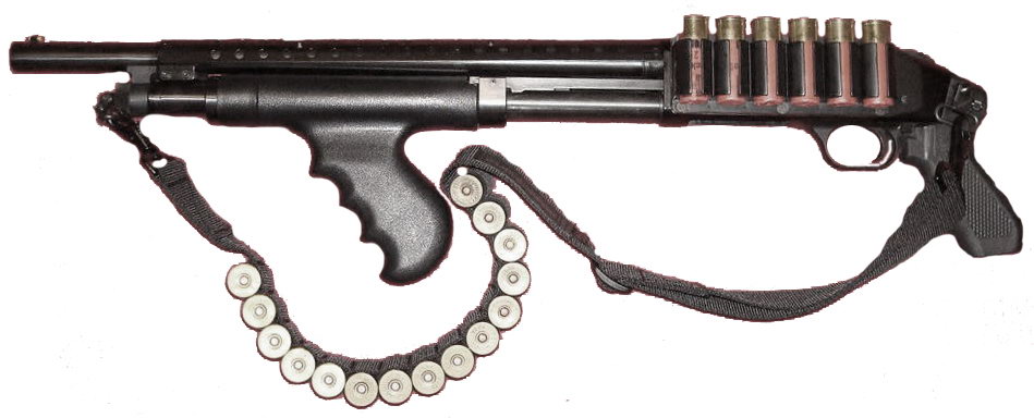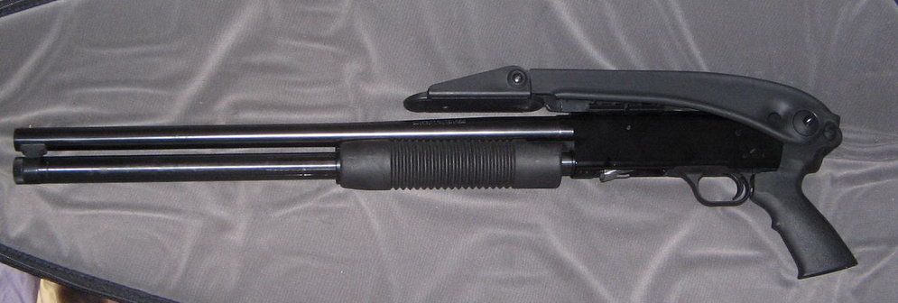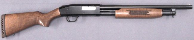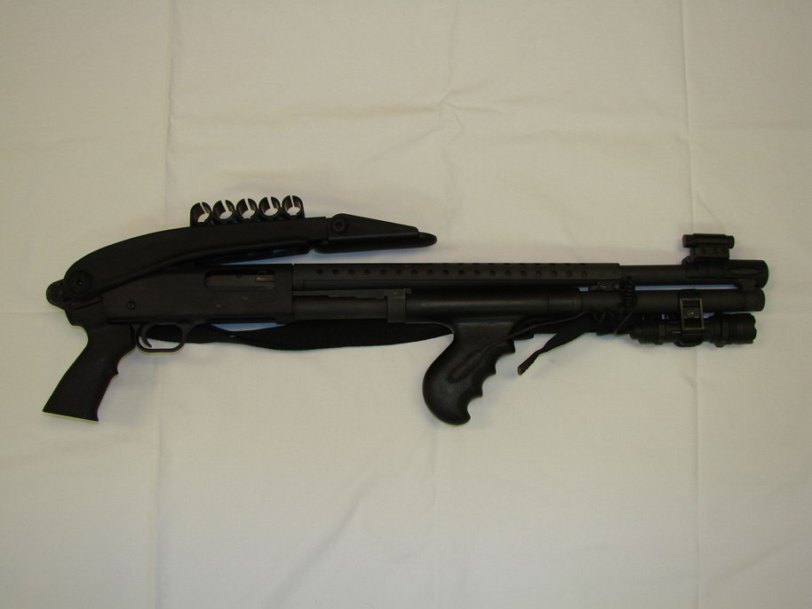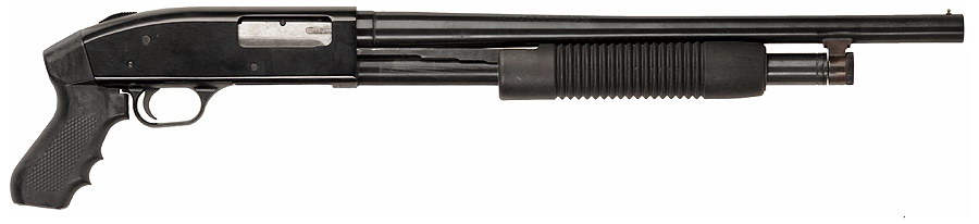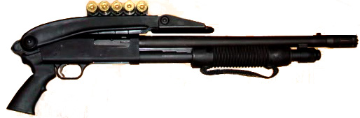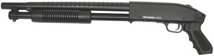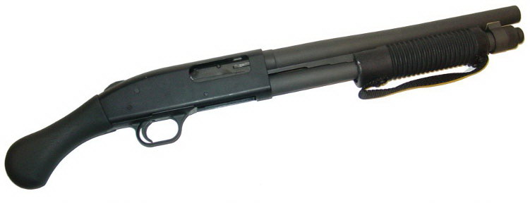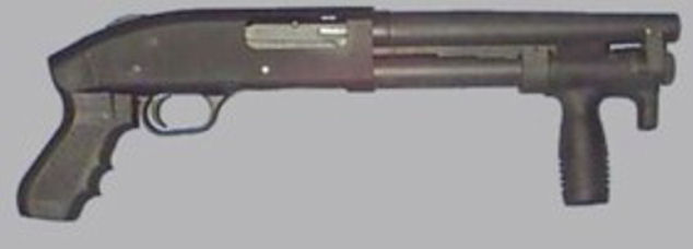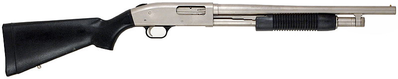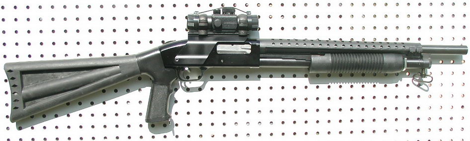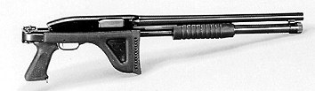 特殊用途型的莫斯伯格500A(即12号口径),这是1980年代生产的木制枪托防暴枪式样的“强制”(Persuader)型,18.5英寸枪管的6发型