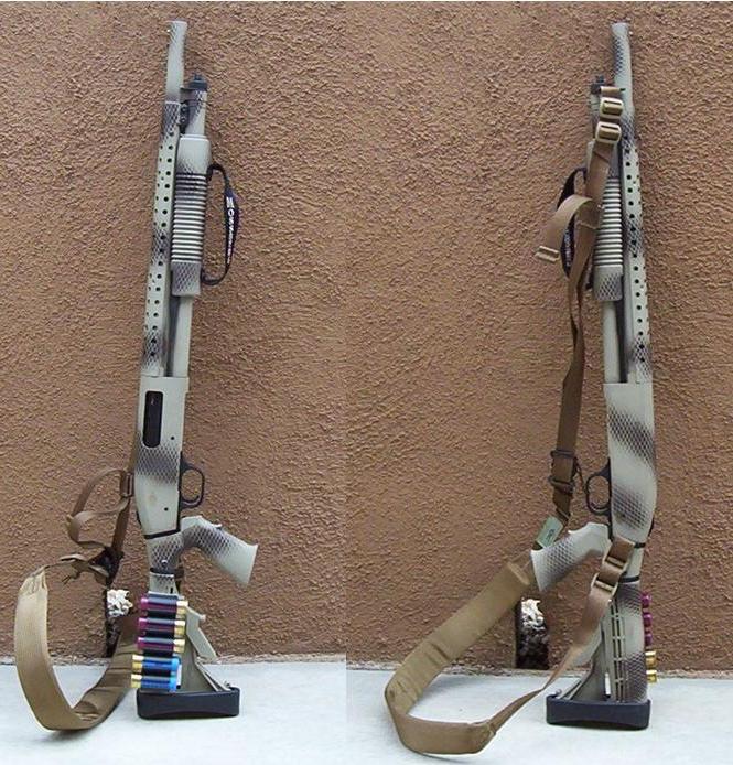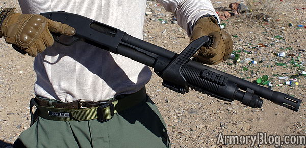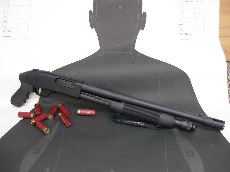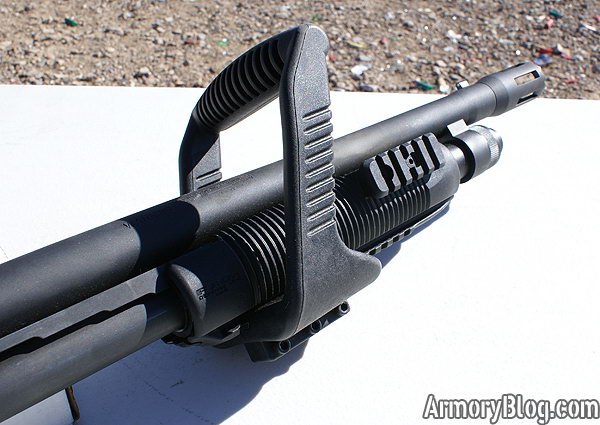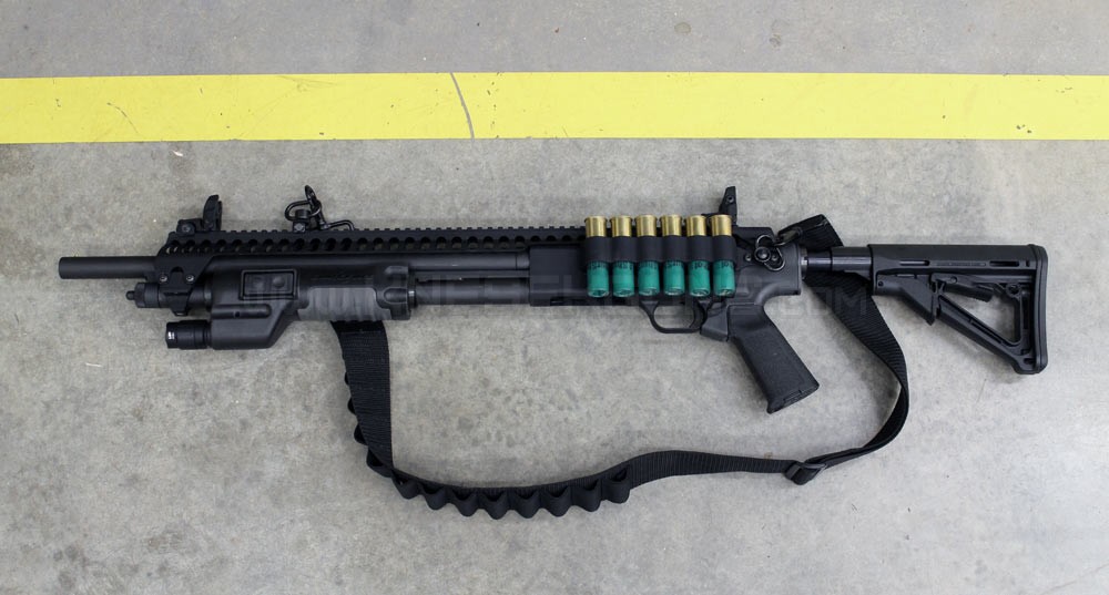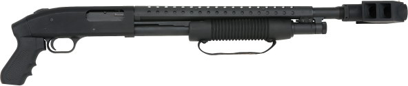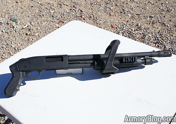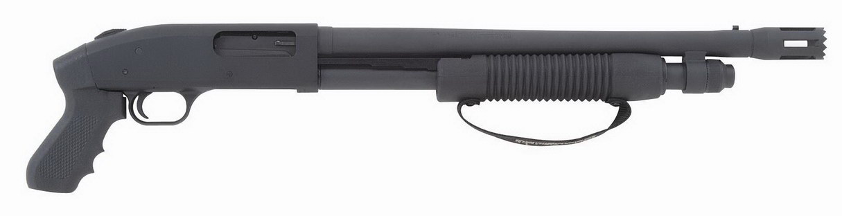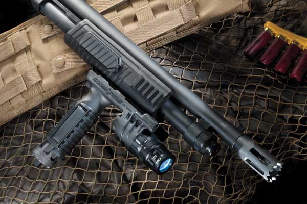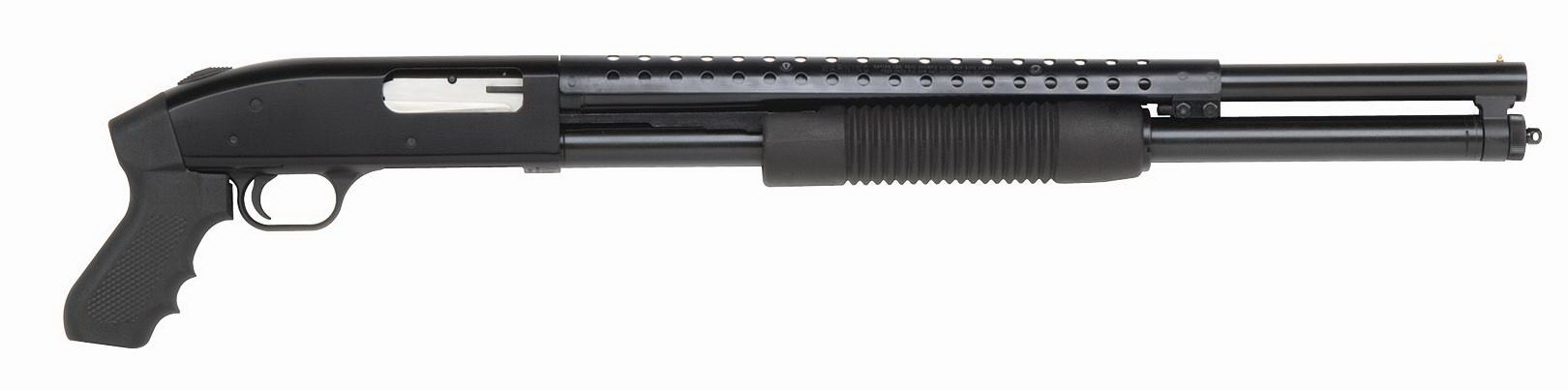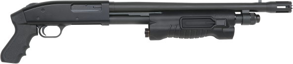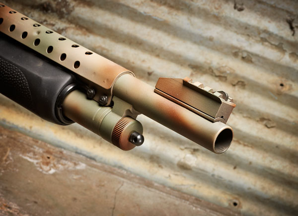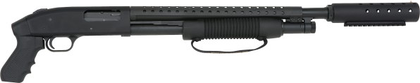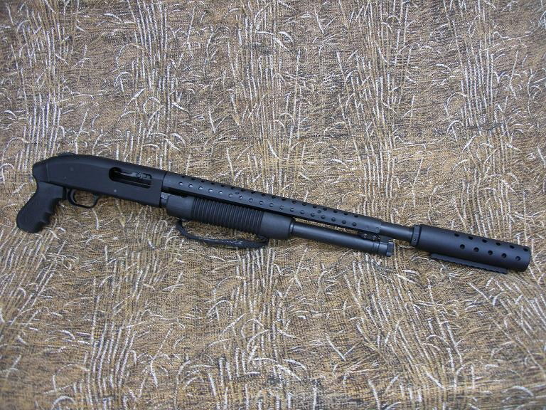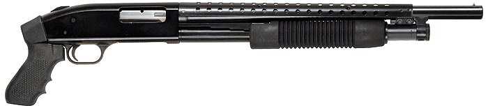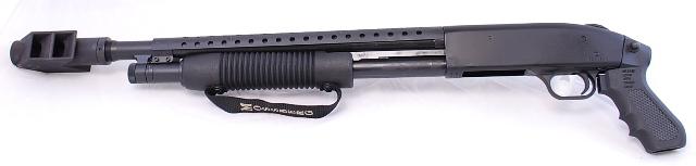 6发的巡逻车型(Cruiser)莫斯伯格500,下面是装了枪管隔热罩的巡逻车型