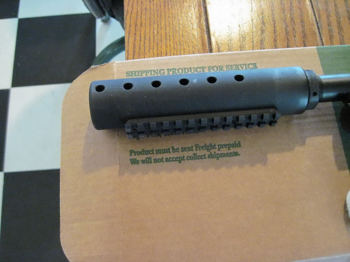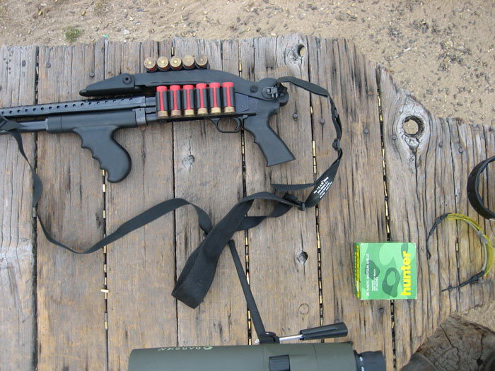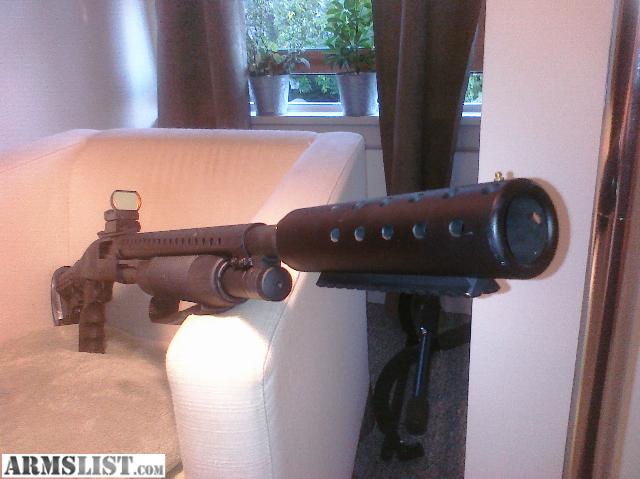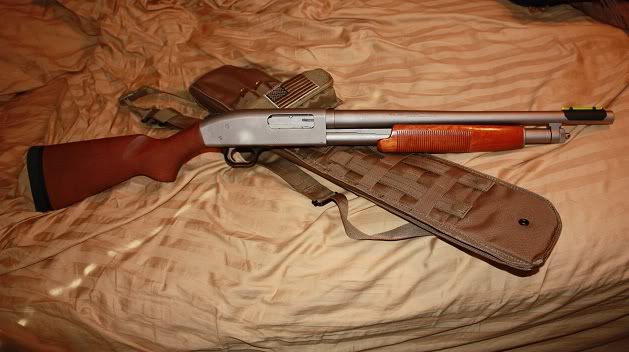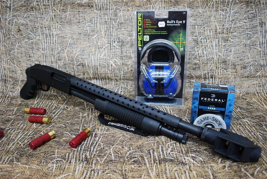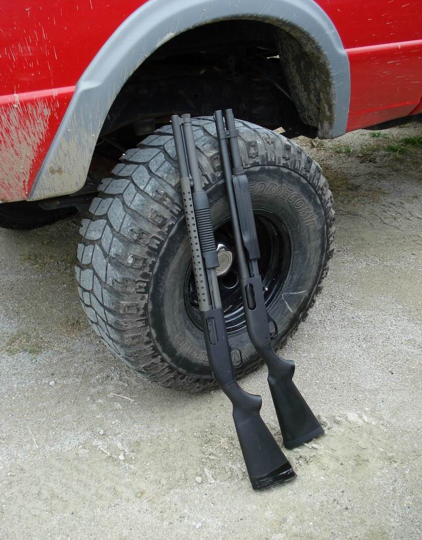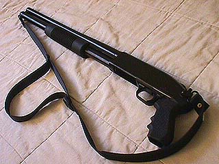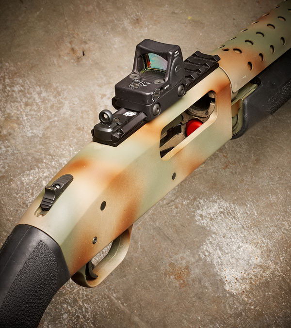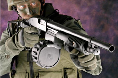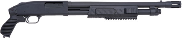 6发的巡逻车型(Cruiser)莫斯伯格500,下面是装了枪管隔热罩的巡逻车型