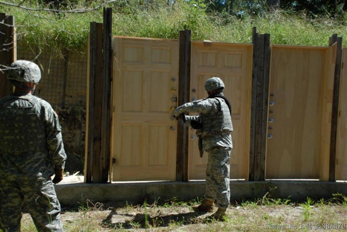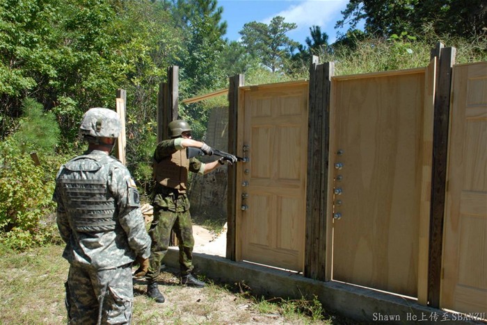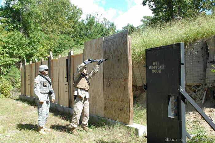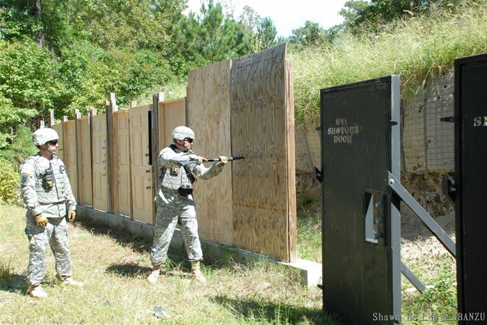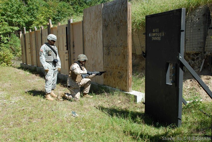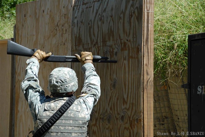 把莫斯伯格500挂在SMLE No.1步枪的下面