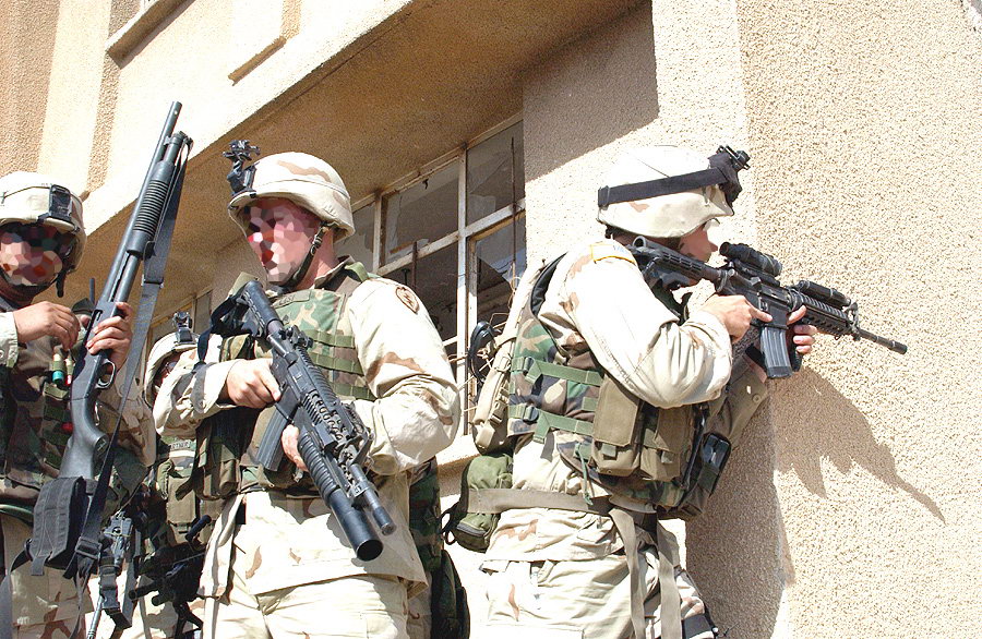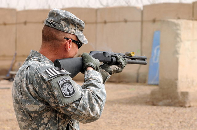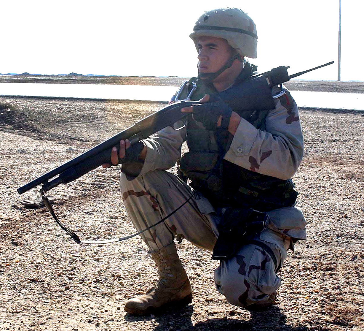 2004年在伊拉克,使用莫斯伯格500的美国陆军大红一师士兵