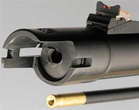 配膛线枪管专门打独头弹的莫斯伯格 Slugster,枪管尾部有悬臂式瞄准镜座