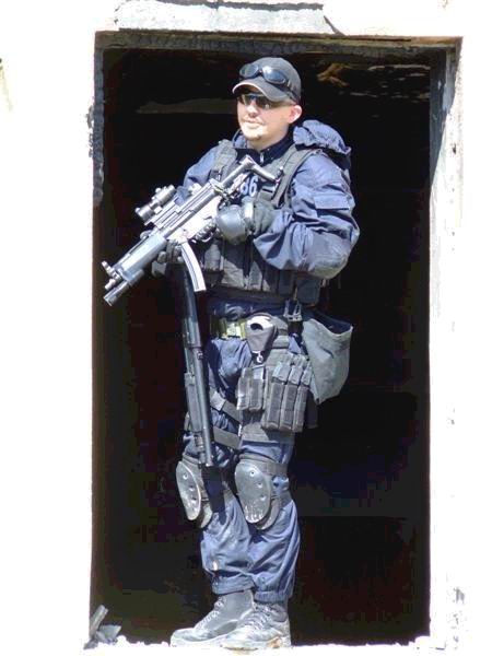 航母上使用莫斯伯格500的安全人员,这把霰弹枪安装了SAGE公司的伸缩式枪托