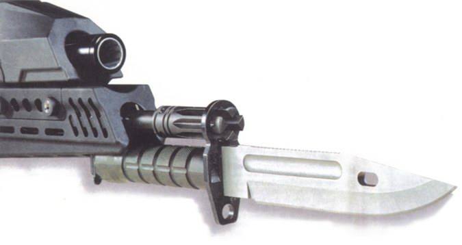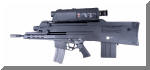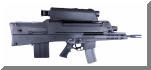 在1996年底,HK公司将它的OICW原型重新组合,改为上下两管结构(下图),下面为5.56mm突击步枪,上面为无托结构的20mm高爆弹发射器。改进后的OICW将重量减小到6.35kg,阿连特集团的目标值是5.45~4.5kg。随后,HK公司根据试验中的情况对OICW样枪几经改进,但基本结构没有再变。