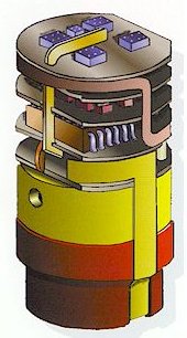高爆弹(High Explosive)武器模块,简称HE。是半自动的榴弹发射器,20mm口径,该发射器是以HK公司12号口径的CAWS为原型改进,采用身管长后座式自动原理。弹性枪口制退器由特殊的泡沫塑料制成,制退器外面有个线圈,用于给榴弹编制程序。