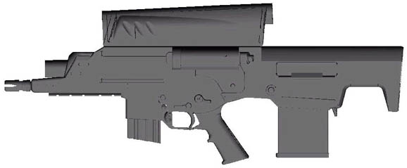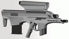 在这一阶段中,ATK的样枪采用两管并列,这张黑白照片就是HK公司的OICW样品。步枪枪管和20mm枪管左右并列,这样从侧面看起来好像尺寸比较小,其实由于横向体积非常大,因此操作起来并不方便,而且比起AAI集团的样品实际上要重得多。而AAI集团则提交了令人信服的武器功能模块。两个集团进行着激烈的竞争。