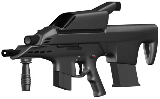 第三阶段的目标是提交能够将各个模块组合在一起并进行演示的样枪。从1996年底到1997年初,HK公司将它的样枪重新组合,将两管并列改为上下排列,改成与AAI集团的OICW结构相同的武器系统,经过一年的加紧研制,拿出了第三阶段的样枪,在1998年2月举行了结论性的技术演示,HK公司的样枪打响了第一枪。