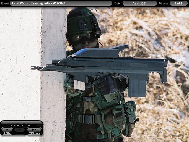 由于OICW与的“陆地勇士”研究是同步进行的,因此在OICW的样枪未能参与“陆地勇士”的试验前,“陆地勇士”的武器平台是以附加了各种电子设备的M4A1代替的。