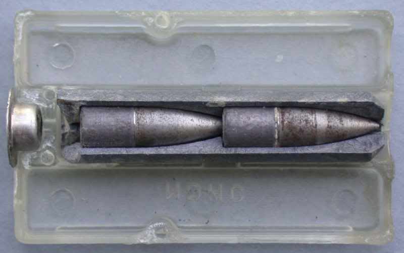 非闭锁弹的结构和数种方案,在确定采用2枚常规5.56mm弹头的方案前,曾试验过其他结构形状的双头弹和三头弹方案