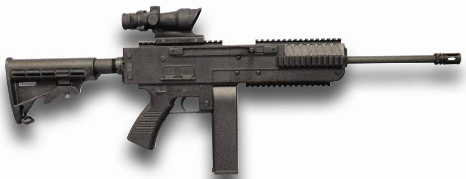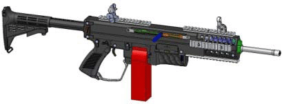 在2010年的会议上公布了原理样机的情况,根据所公开的PDF文件中提及,该枪全长和M4相同,但枪管长了4英寸。弹匣容量42发。在2010年3月已经开始进行测试。枪托折叠时全长24.75英寸。采用起落式弹膛设计,