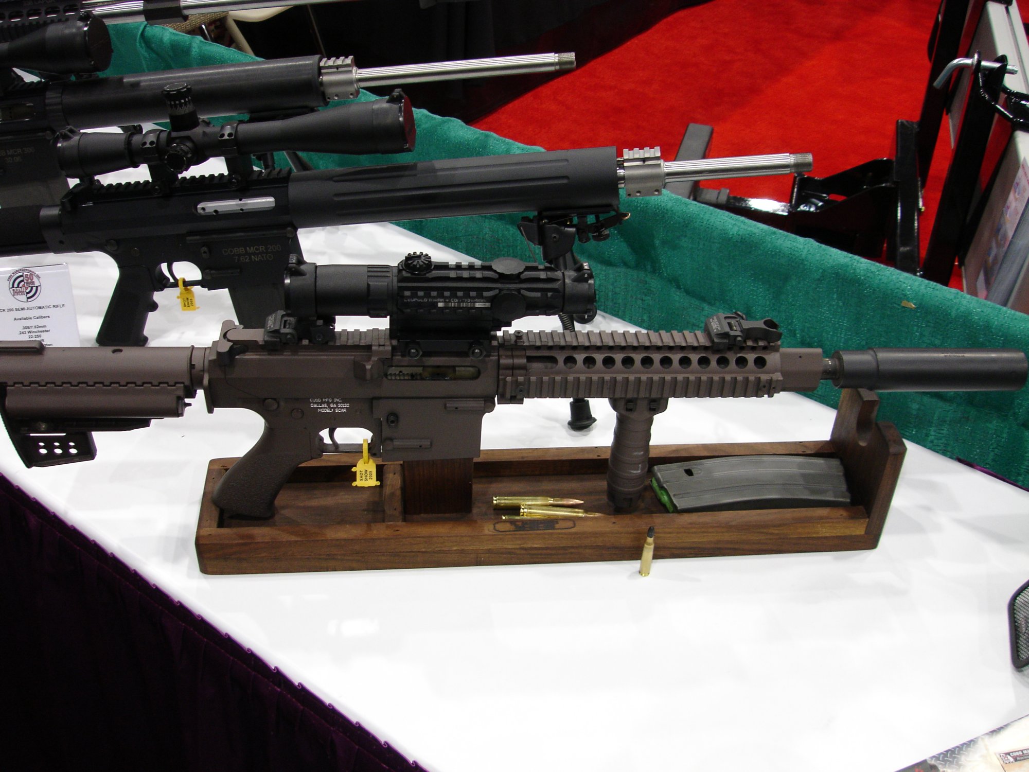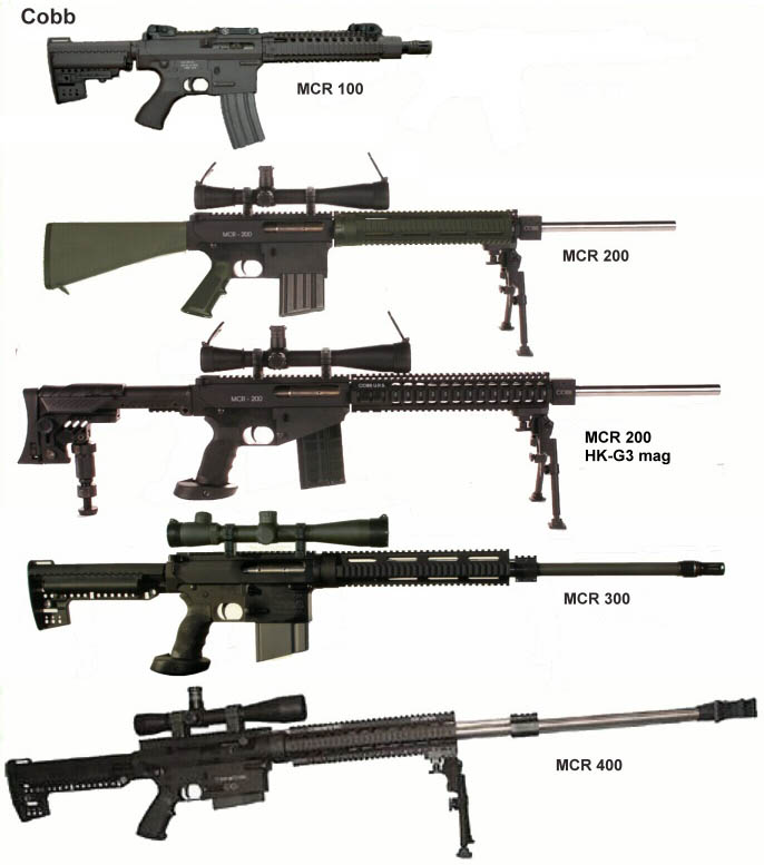 柯布公司(Cobb)在2005年拉斯维加斯的枪展上展示了他们参加SCAR计划的样枪——MCR步枪,MCR是多口径步枪(Multi-Caliber-Rifle)的缩写,这是一种以AR-15类步枪为基础设计的。据Cobb公司宣称,这是世界上第一种真正的多口径AR-15式步枪,可用的口径从9mm派弹到.339拉普,能列出一份长长的清单。Cobb公司的CEO斯齐普·帕特尔在枪展上对参观者说,在SOCOM SCAR测试期间Cobb MCR样枪的导轨出现松动,因而导致MCR被取消资格。当时MCR的导轨系统是转包出去的,现在Cobb公司是自已制造MCR的导轨,新导轨在发射大量弹药后也不会松动。Cobb公司的人还宣称在枪展期间,有许多的军方和执法机构的特别行动人员在的他们柜台前停下来,他们对此武器的印象深刻,而且认为应该重新测试和评估该武器。不过无论如何,由于竞争失败,Cobb公司现在也只能向民间推销他们的产品了,除了销售成品枪外,Cobb公司也提供改装业务,任何组织或个人都可以与Cobb公司业务部联系把他们原有的AR-15类步枪改装成Cobb MCR。