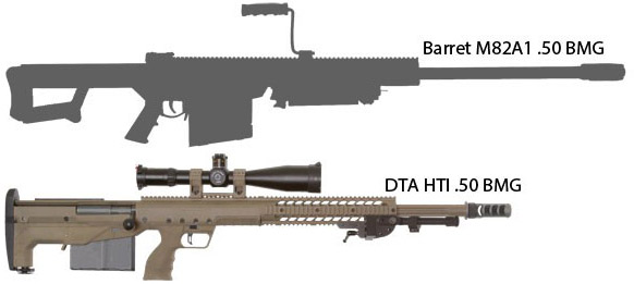 DTA HTI与同口径的巴雷特M82A1的长度对比示意图