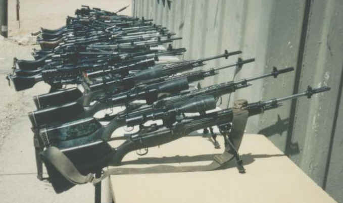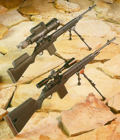 上图为采用不同枪托和光学瞄准镜的两种M14 SWS。左边的M14 SWS配备有一个Litton PVS2夜视瞄准镜,右边的M14 SWS配备El-Op的Nimrod 6×40白光瞄准镜。左边的步枪所采用的枪托是旧式的,这种枪托后来被右边步枪上的那种新枪托所取代。在1994年,Nimrod瞄准镜也被新的Svarovski Futonic 6×42瞄准镜所取代。