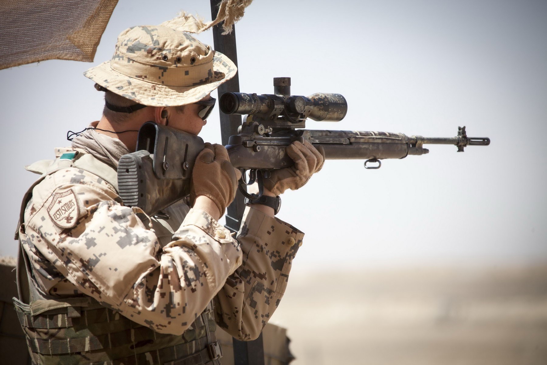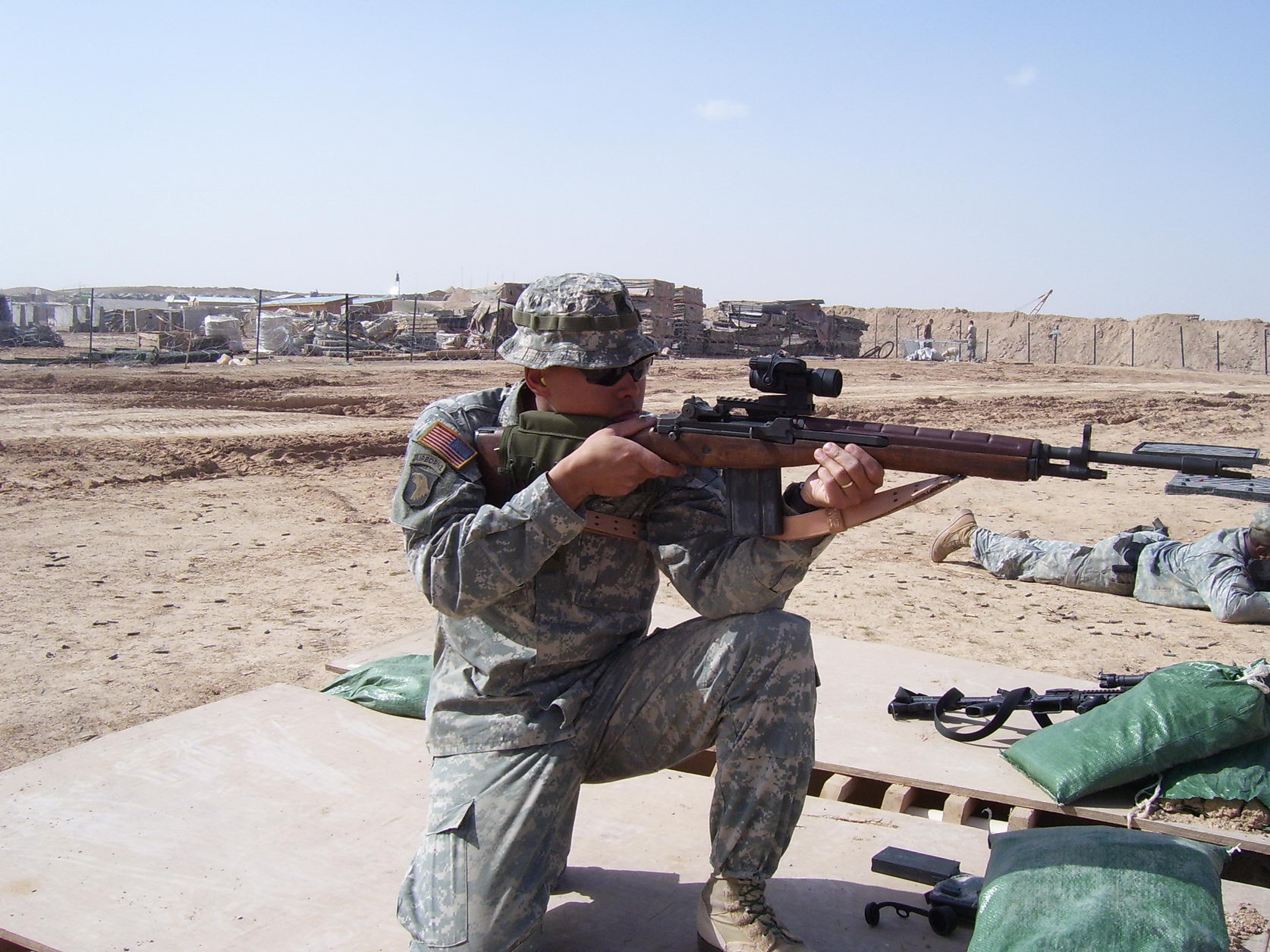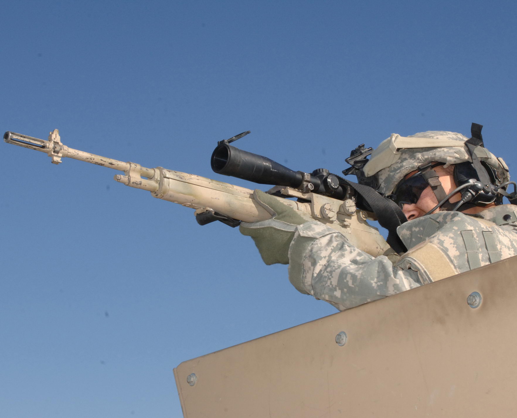 伊拉克战争中使用M14用作精确射击支援的美国陆军特种部队士兵,注意机匣上也是安装了快慢机锁