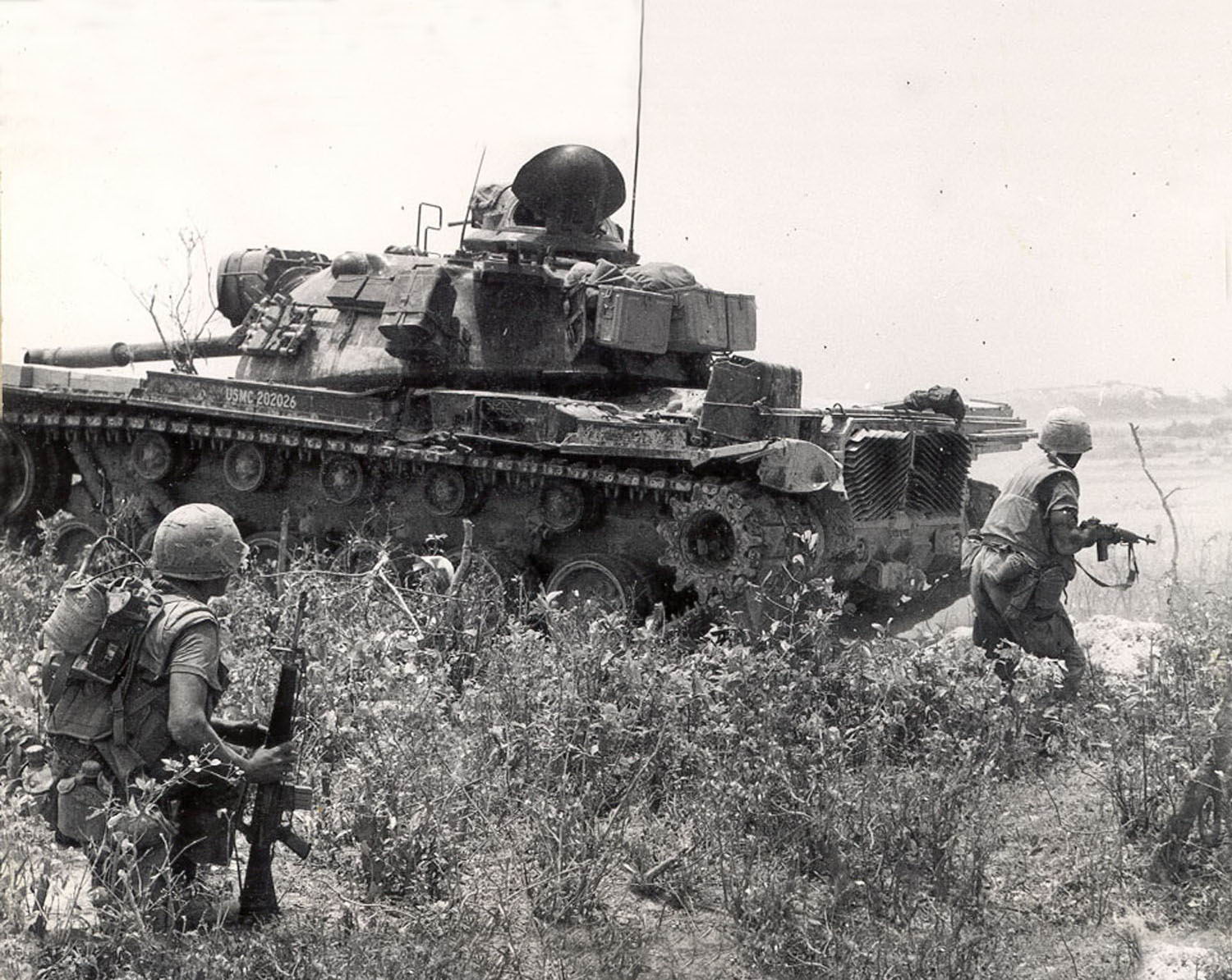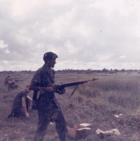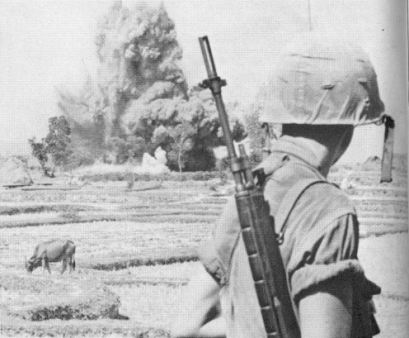 1970年,在越南的美国海军陆战队,蹲姿射击的士兵使用的是M14