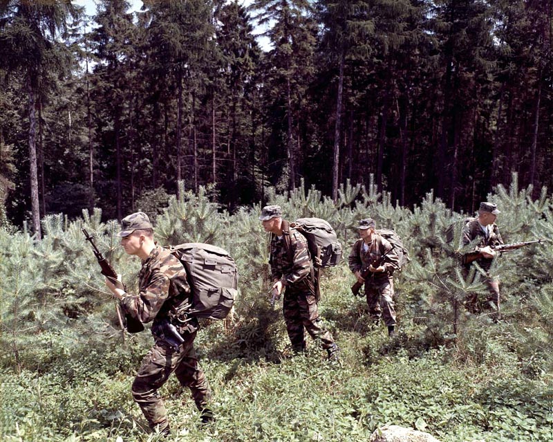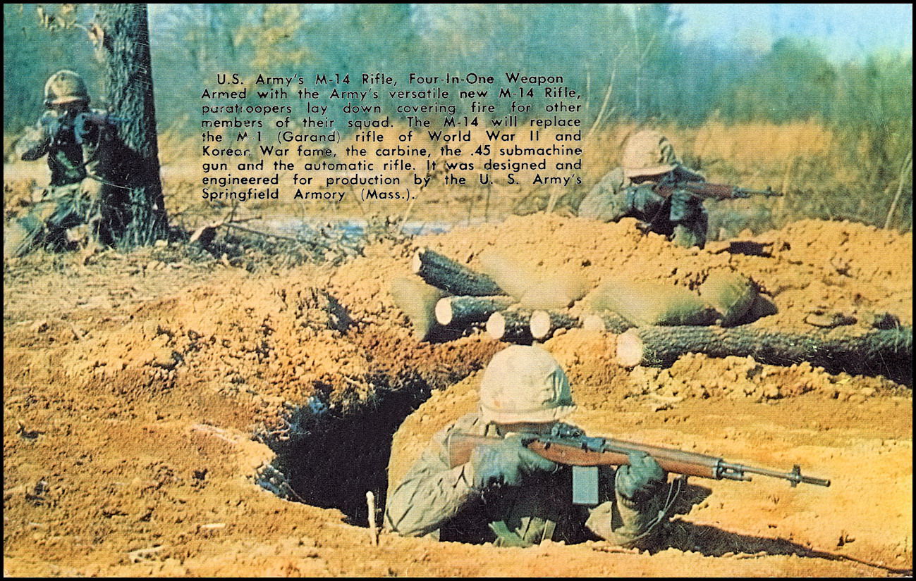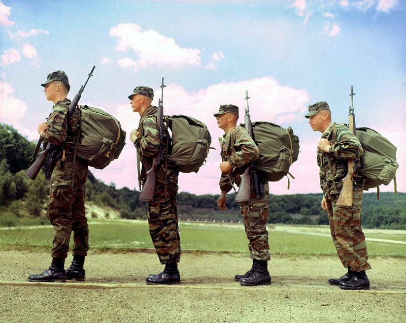 大概在1960年代初期,在本宁堡使用M14进行演练的美国陆军士兵