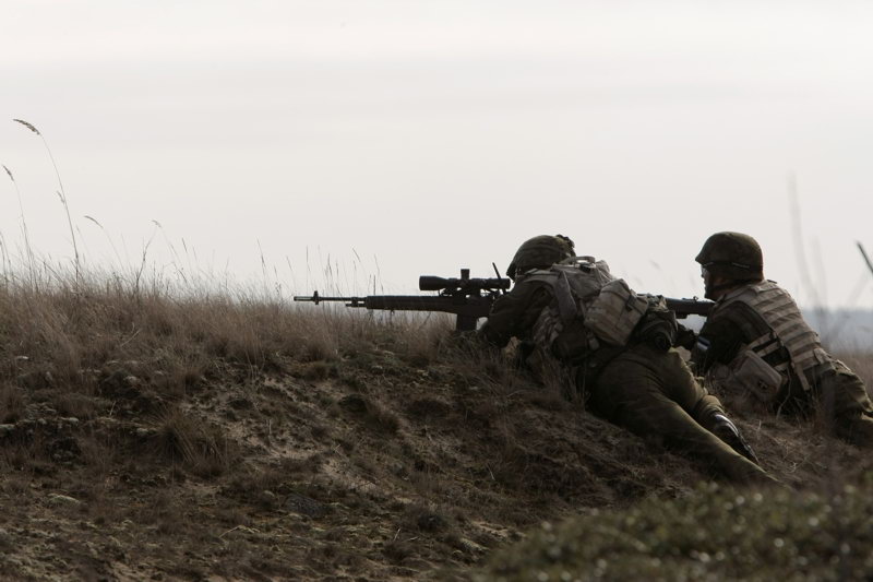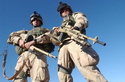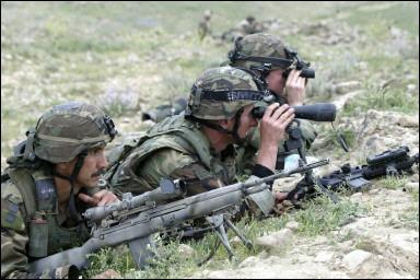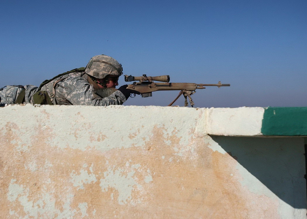 第二步兵师的一个狙击小组,观瞄手使用的武器是加装了RAS上护木的M14,用HDS瞄准镜
