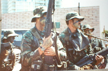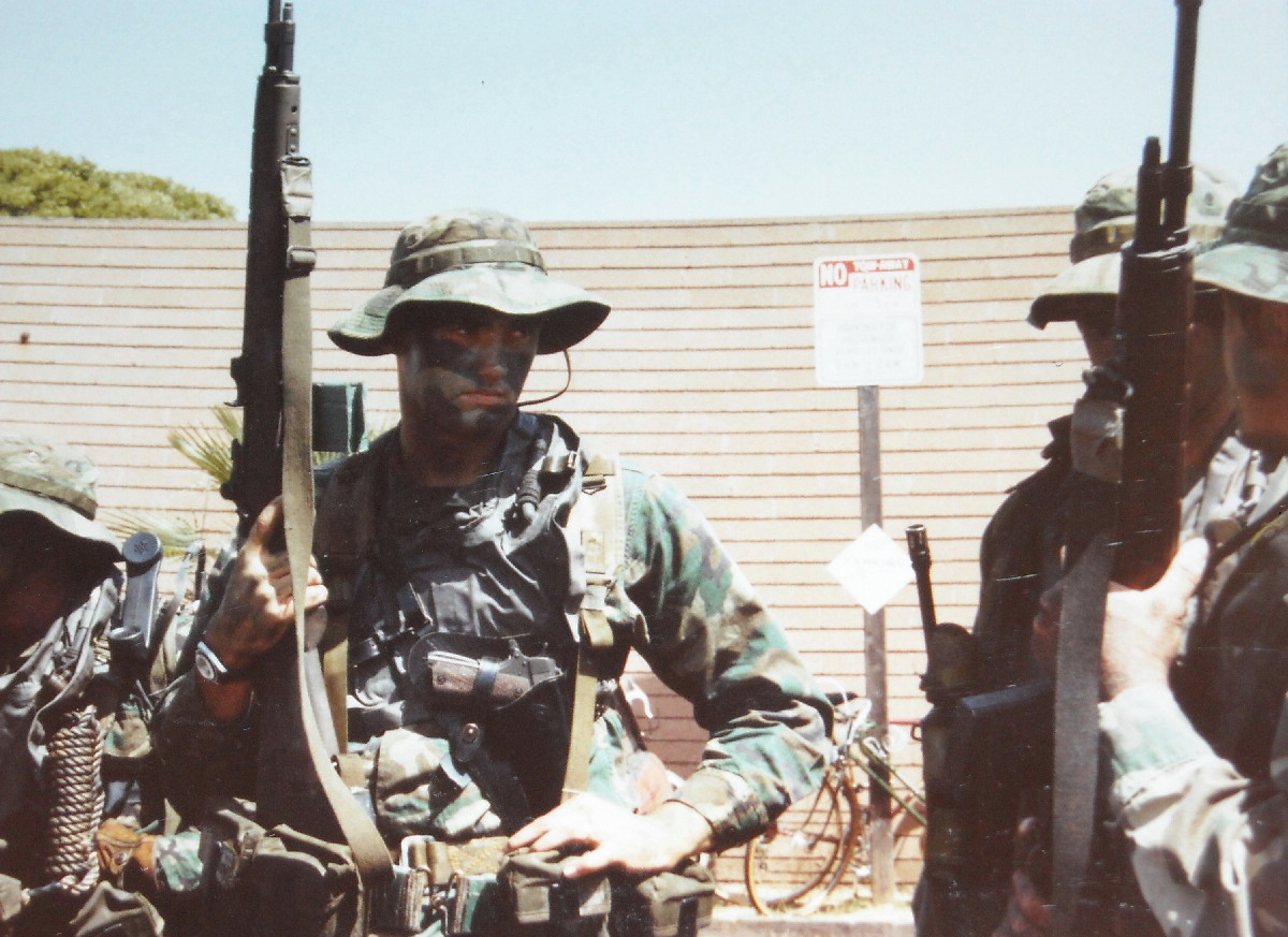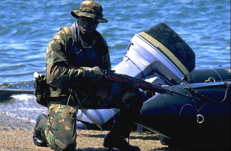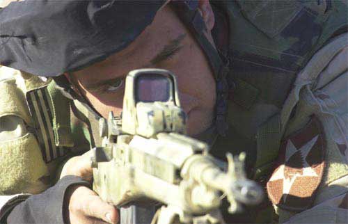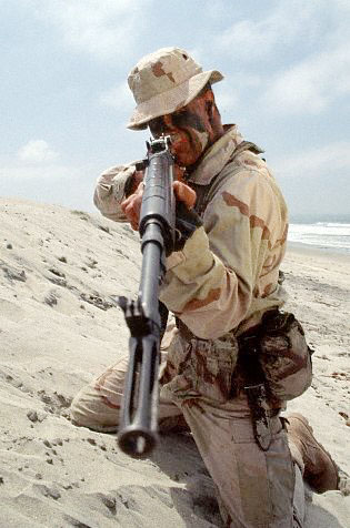 1993年,一名美国海军海豹队员在波斯湾地区参与一次海上禁运的搜查任务,他的M14上安装了Aimpoint瞄准镜。
