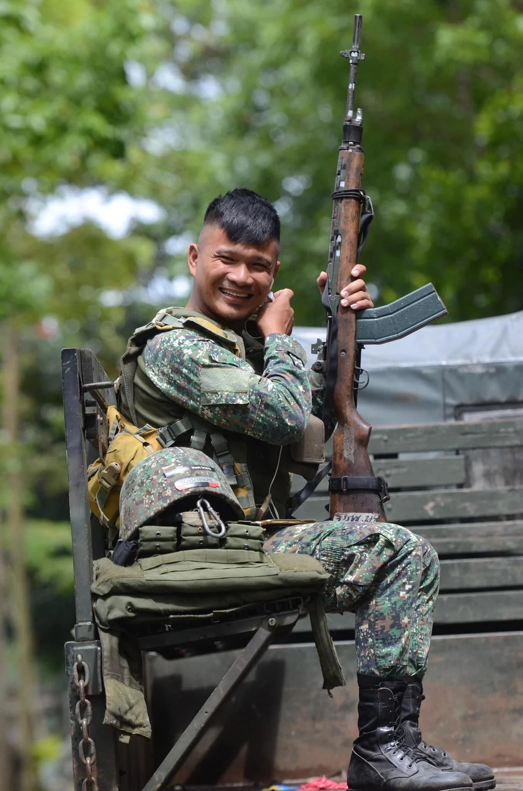 这是菲律宾的地方性武装“新人民军”,注意图中的M14弹匣被改装过,增大了容量