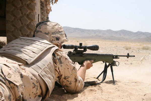 使用M14型步枪进行射击的美国海军陆战队士兵,但机匣上明显没有快慢机,可能是一支民用型