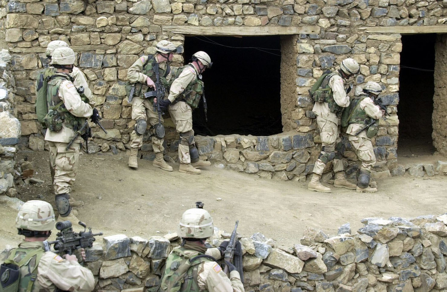 2002年,在阿富汗的美国陆军士兵,图下方中央的士兵使用的是M14