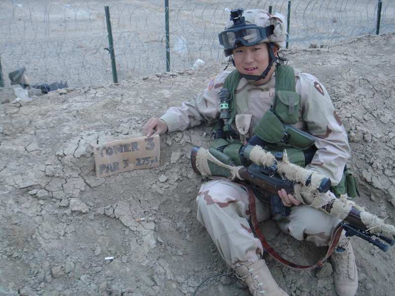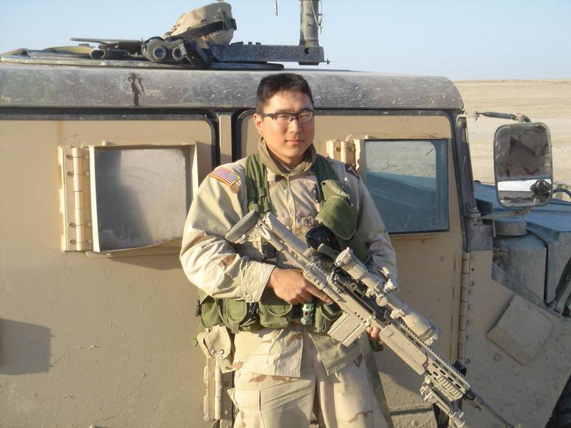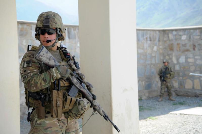 在美军陆军中服役的亚裔士兵,右边那位的M14更换了Sage EBR护木。
