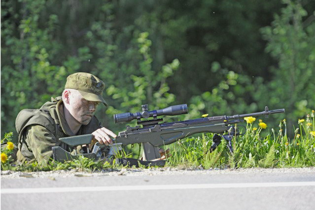 ![]() 这名第10山地师的狙击手在他的M14上使用了M2两脚架,这是在狙击枪上较少见的组合 |