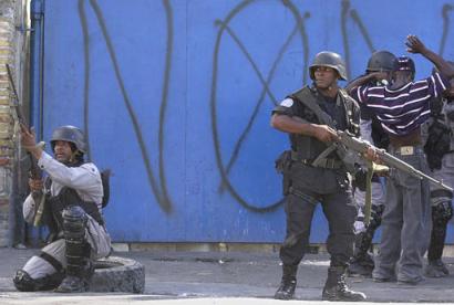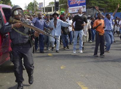 使用美国生产的M14的海地警察,下面的则是M14A1