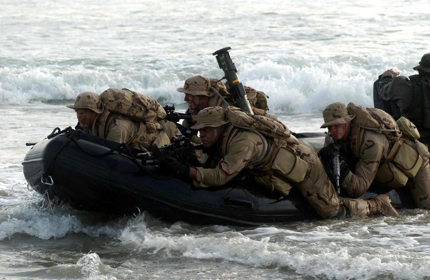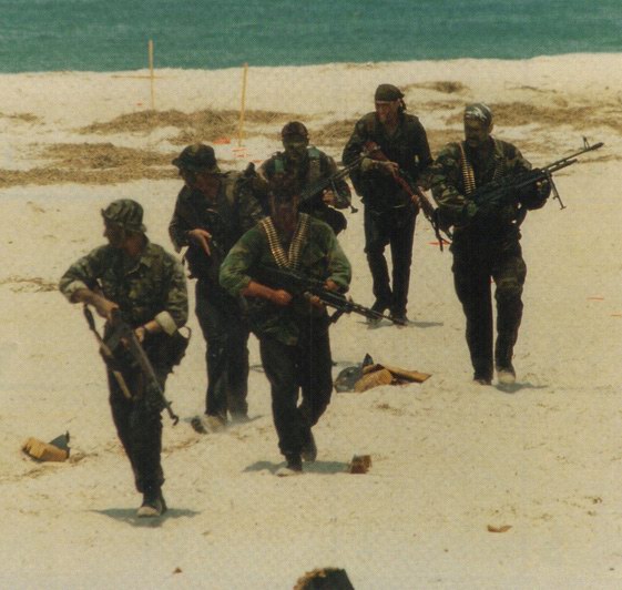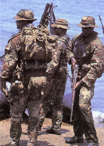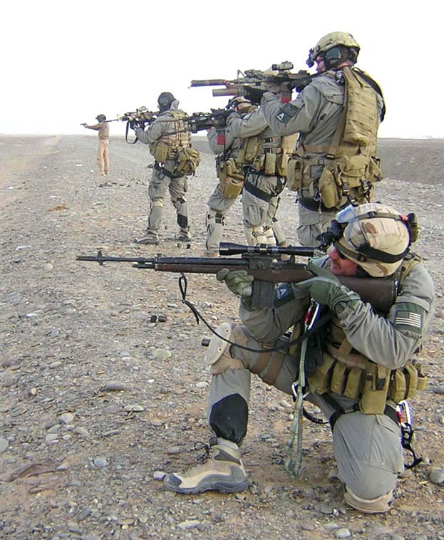 在海豹上训练的一组海豹队员,M60E4是比较新的装备,说明海豹在刚进入21世纪时仍然没有放弃M14